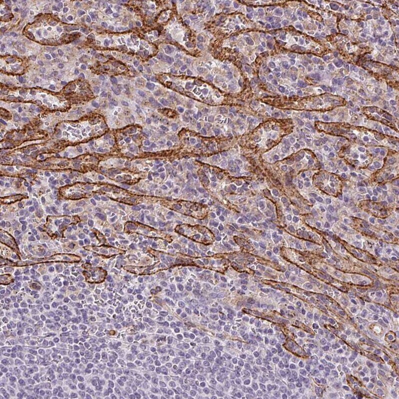 - Immunohistochemical staining of AIF1L in human lymph node using AIF1L Polyclonal Antibody (Product # PA5-63358) shows low expression as expected.