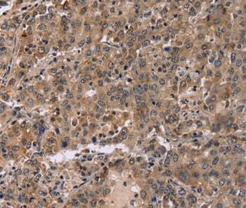 - Immunohistochemical analysis of FAM107A in paraffin embedded Human liver cancer tissue using FAM107A Polyclonal Antibody (Product # PA5-50409) at a 1:30 dilution.