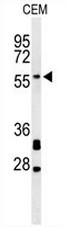 - Western blot analysis of CCD82 Antibody (C-term) (Cat. #AP50754PU-N) in CEM cell line lysates (35µg/lane). CCD82 (arrow) was detected using the purified Pab.