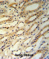 - CCD82 Antibody (C-term) (Cat. #AP50754PU-N) IHC analysis in formalin fixed and paraffin embedded lung tissue followed by peroxidase conjugation of the secondary antibody and DAB staining. This data demonstrates the use of the CCD82 Antibody (C-term) for immunohistochemistry. Clinical relevance has not been evaluated.