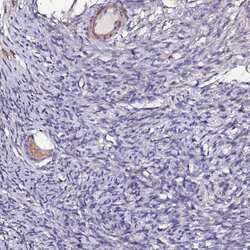 - Immunohistochemical analysis of JRKL in human ovary using JRKL Polyclonal Antibody (Product # PA5-61174) shows moderate cytoplasmic positivity in follicle cells.