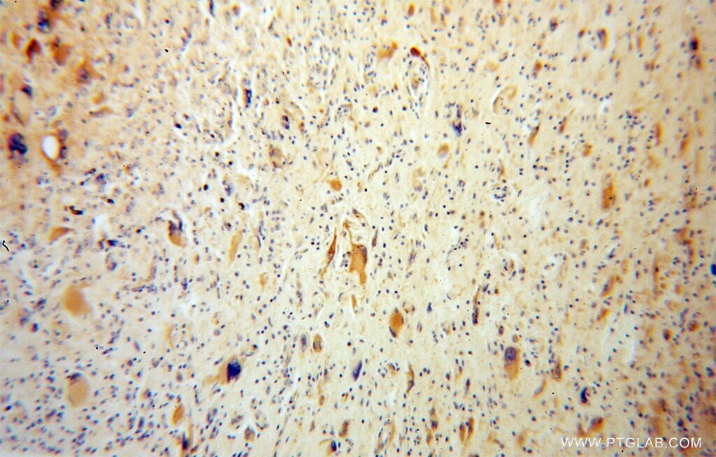 - Immunohistochemistry of paraffin-embedded human gliomas using 13986-1-AP (ANGPTL5 antibody) at dilution of 1:100 (under 10x lens).