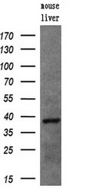 - Western blot analysis of extracts (10 µg) from a mouse tissue by using anti-UNG monoclonal antibody. (1:200)
