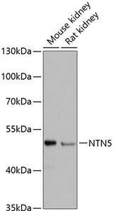 - Western blot analysis of extracts of various cell lines using NTN5 Polyclonal Antibody at dilution of 1:3000.