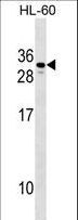 - CGB2 Antibody western blot of HL-60 cell line lysates (35 ug/lane). The CGB2 antibody detected the CGB2 protein (arrow).