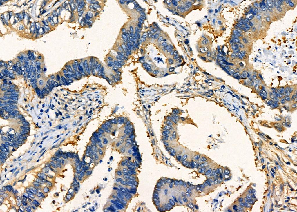 - Immunohistochemistry analysis of hCG beta-2 in mouse lung tissue. The sample was formaldehyde fixed and a heat mediated antigen retrieval step in citrate buffer was performed. Samples were incubated with hCG beta-2 polyclonal antibody (Product # PA5-102950) using a dilution of 1:100 (4°C overnight) followed by HRP conjugated anti-Rabbit secondary antibody.