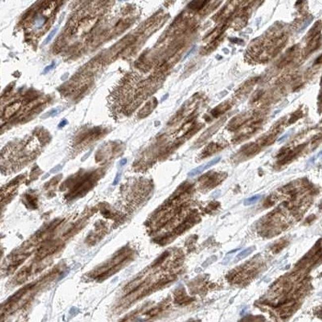 - Immunohistochemical staining of COQ3 in human heart muscle using COQ3 Polyclonal Antibody (Product # PA5-56699).