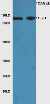 - L1 mouse brain lysate L2 mouse heart lysates probed with Anti Phospho-ATG1(Ser556)Polyclonal Antibody, Unconjugated (bs-3464R) at 1:200 overnight at 4°C. Followed by conjugation to secondary antibody (bs-0295G-HRP) at 1:3000 for 90 min at 37°C.