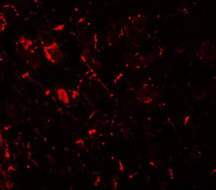 - Immunofluorescence of ULK1 in rat brain tissue with ULK1 antibody at 20 ug/mL.