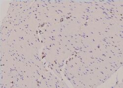 - Immunohistochemistry analysis of paraffin-embedded Phospho-ULK1 (Ser450) in human gastric tissue sections. Antigen retrieval was performed using citrate buffer. Samples were blocked with blocking buffer (1.5 hr, 22°C), incubated with Phospho-ULK1 (Ser450) polyclonal antibody (Product # PA5-105421) using a dilution of 1:100 (1.5 hr, 22°C), followed by HRP conjugated goat anti-rabbit.