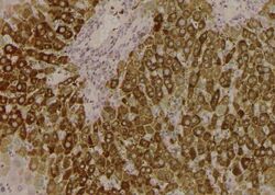 - Immunohistochemistry analysis of paraffin-embedded Phospho-ULK1 (Ser450) in mouse liver tissue sections. Antigen retrieval was performed using citrate buffer. Samples were blocked with blocking buffer (1.5 hr, 22°C), incubated with Phospho-ULK1 (Ser450) polyclonal antibody (Product # PA5-105421) using a dilution of 1:100 (1.5 hr, 22°C), followed by HRP conjugated goat anti-rabbit.