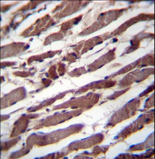 - PUS1 Antibody immunohistochemistry of formalin-fixed and paraffin-embedded human skeletal muscle followed by peroxidase-conjugated secondary antibody and DAB staining.