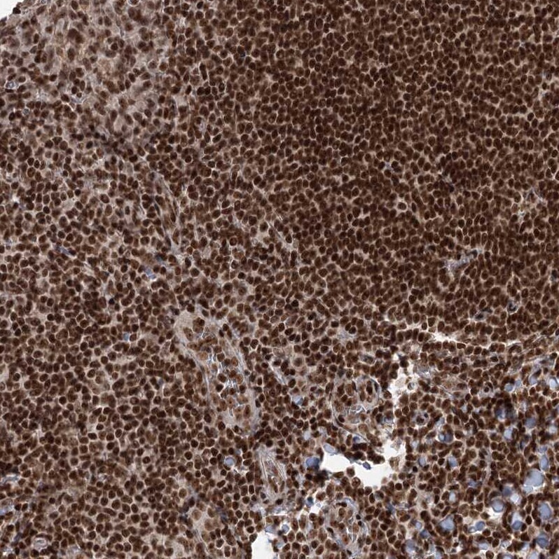 - Immunohistochemical analysis of CGGBP1 in human tonsil using CGGBP1 Polyclonal Antibody (Product # PA5-57916) shows strong nuclear positivity in non-germinal center cells.