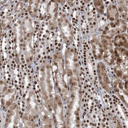 - Immunohistochemical analysis of CGGBP1 in human kidney using CGGBP1 Polyclonal Antibody (Product # PA5-57916) shows strong nuclear positivity in cells in tubules.