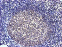 - IHC of paraffin-embedded Human tonsil using anti-SLFNL1 mouse monoclonal antibody.