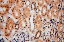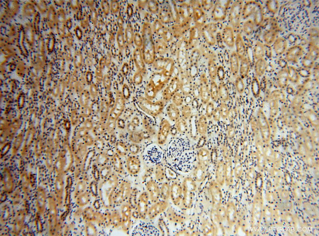 - Immunohistochemical of paraffin-embedded human kidney using 17065-1-AP(SLFNL1 antibody) at dilution of 1:100 (under 10x lens)