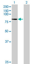 - Western Blot analysis of TTC12 expression in transfected 293T cell line (H00054970-T01) by TTC12 MaxPab polyclonal antibody.Lane 1: TTC12 transfected lysate(80.52 KDa).Lane 2: Non-transfected lysate.