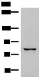 - Western blot analysis of Human bladder transitional cell carcinoma grade 2-3 tissue lysate using TTC12 Polyclonal Antibody at dilution of 1:300