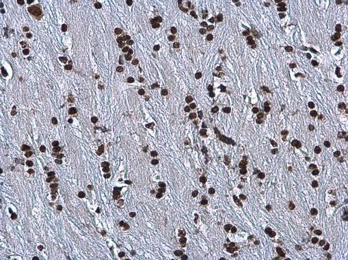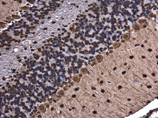 - Immunohistochemistry (Paraffin) analysis of hnRNP A2B1 was performed in paraffin-embedded mouse brain tissue using hnRNP A2B1 Polyclonal Antibody (Product # PA5-34939) at a dilution of 1:500.