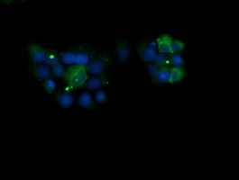 - Anti-KLK8 mouse monoclonal antibody (TA506109) immunofluorescent staining of COS7 cells transiently transfected by pCMV6-ENTRY KLK8(RC208152).