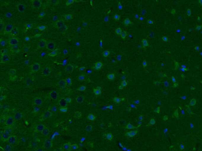 - Paraformaldehyde-fixed, paraffin embedded mouse brain; Antigen retrieval by boiling in sodium citrate buffer (pH6) for 15min; Block endogenous peroxidase by 3% hydrogen peroxide for 30 minutes; Blocking buffer (normal goat serum) at 37°C for 20min; Antibody incubation with KLK8 Polyclonal Antibody, Unconjugated (bs-5871R) at 1:200 overnight at 4°C, followed by a FITC Conjugated secondary and DAPI staining.