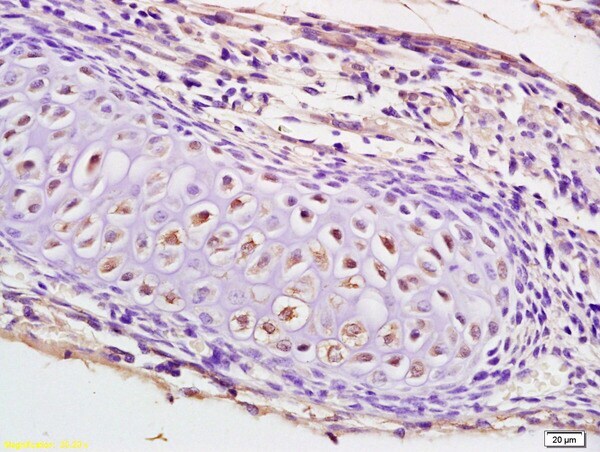 - Formalin-fixed and paraffin embedded mouse embryo labeled with Anti-KLK8 Polyclonal Antibody, Unconjugated (bs-5871R) at 1:200 followed by conjugation to the secondary antibody and DAB staining.