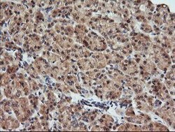 - Immunohistochemical staining of paraffin-embedded human pancreas tissue within the normal limits using anti-KLK8 mouse monoclonal antibody. (Heat-induced epitope retrieval by 10mM citric buffer, pH6.0, 120°C for 3min, TA506135)