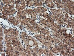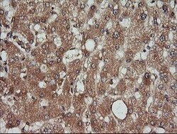 - Immunohistochemical staining of paraffin-embedded human liver tissue within the normal limits using anti-KLK8 mouse monoclonal antibody. (Heat-induced epitope retrieval by 10mM citric buffer, pH6.0, 120°C for 3min, TA506135)