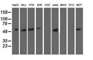 - Western blot analysis of extracts (35ug) from 9 different cell lines by using anti-NT5DC1 monoclonal antibody.