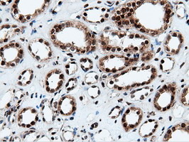 - Immunohistochemical staining of paraffin-embedded Human Kidney tissue within the normal limits using anti-NT5DC1 mouse monoclonal antibody. (Heat-induced epitope retrieval by 10mM citric buffer, pH6.0, 100C for 10min, TA501590)