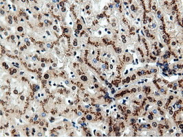 - Immunohistochemical staining of paraffin-embedded Human liver tissue within the normal limits using anti-NT5DC1 mouse monoclonal antibody. (Heat-induced epitope retrieval by 10mM citric buffer, pH6.0, 100C for 10min, TA501590)