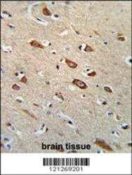 - Formalin-fixed and paraffin-embedded human brain tissue reacted with TCERG1L Antibody (Center), which was peroxidase-conjugated to the secondary antibody, followed by DAB staining. This data demonstrates the use of this antibody for immunohistochemistry; clinical relevance has not been evaluated.