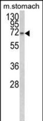 - Western blot analysis of TCERG1L Antibody (Center) (GTX80965) in mouse stomach tissue lysates (35ug/lane). TCERG1L (arrow) was detected using the purified Pab.