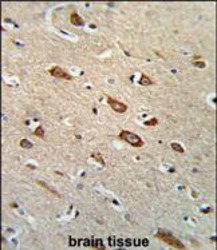 - Formalin-fixed and paraffin-embedded human brain tissue reacted with TCERG1L Antibody (Center) (GTX80965), which was peroxidase-conjμgated to the secondary antibody, followed by DAB staining. This data demonstrates the use of this antibody for immunohistochemistry; clinical relevance has not been evaluated.