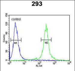 - TCERG1L Antibody (Center) (GTX80965) flow cytometric analysis of 293 cells (right histogram) compared to a negative control cell (left histogram).FITC-conjμgated goat-anti-rabbit secondary antibodies were used for the analysis.
