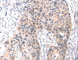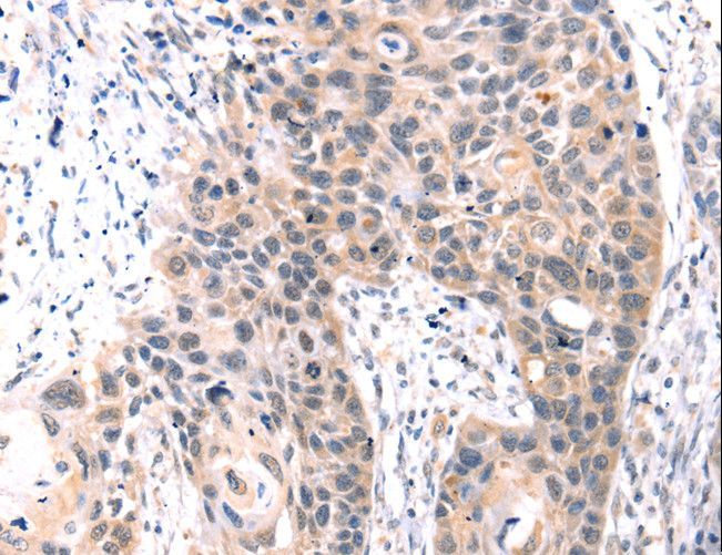 - Immunohistochemistry of paraffin-embedded Human esophagus cancer using TCERG1L Polyclonal Antibody at dilution of 1:30.