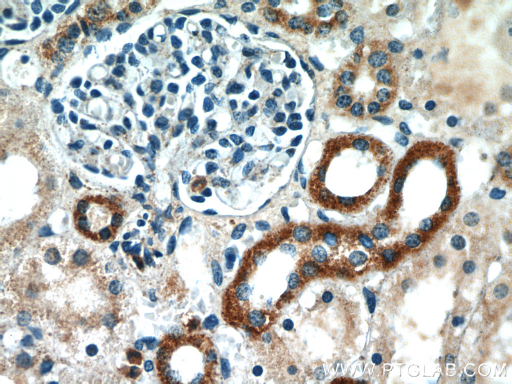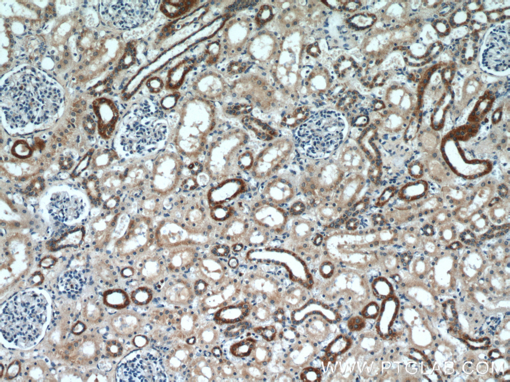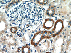 - Immunohistochemical of paraffin-embedded human kidney using 20612-1-AP(SLC37A4 antibody) at dilution of 1:50 (under 10x lens)