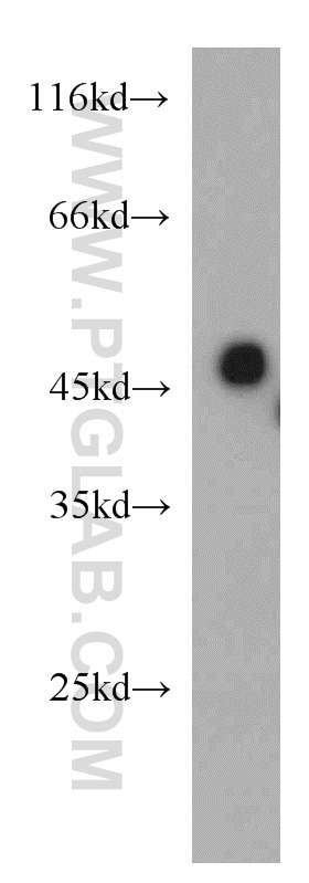 - mouse kidney tissue were subjected to SDS PAGE followed by western blot with 20612-1-AP(SLC37A4 antibody) at dilution of 1:500
