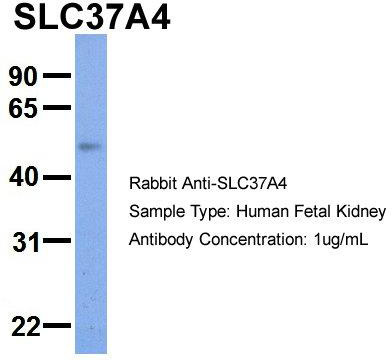 - Host: Rabbit; Target Name: SLC37A4; Sample Tissue: Human Fetal Kidney; Antibody Dilution: 1.0 ug/ml