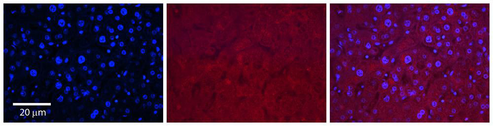 - Rabbit Anti-SLC37A4 Antibody; Formalin Fixed Paraffin Embedded Tissue: Human Adult Liver; Observed Staining: Cytoplasm in hepatocytes, weak signal, low tissue distribution; Primary Antibody Concentration: 1:100; Secondary Antibody: Donkey anti-Rabbit-Cy3;
