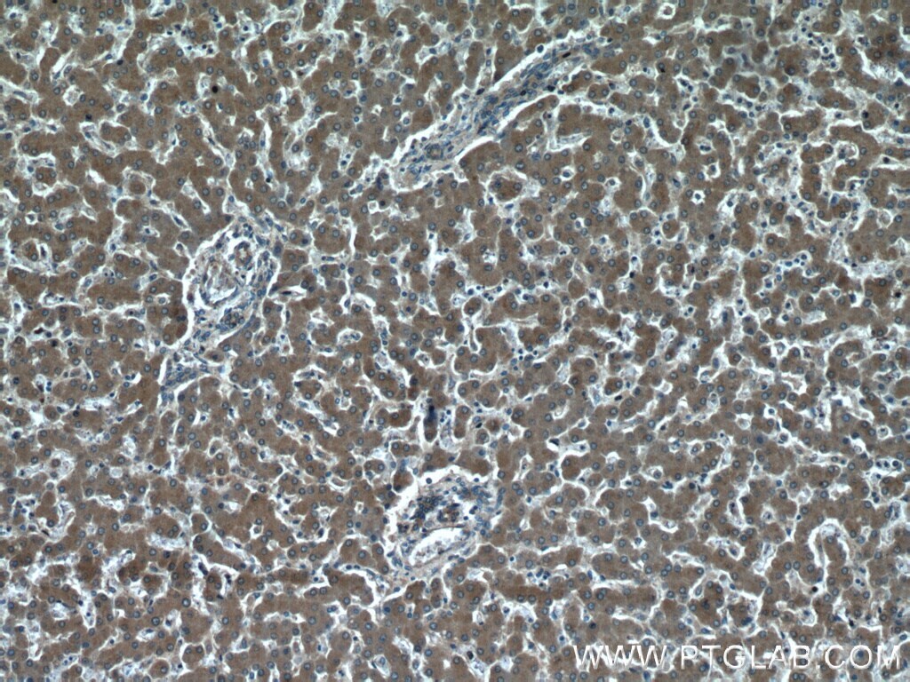 - Immunohistochemistry of paraffin-embedded human liver using 20612-1-AP (SLC37A4 antibody) at dilution of 1:100 (under 10x lens).
