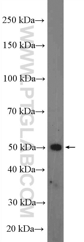 - HeLa cells were subjected to SDS PAGE followed by western blot with 20612-1-AP (SLC37A4 Antibody) at dilution of 1:1000 incubated at room temperature for 1.5 hours.
