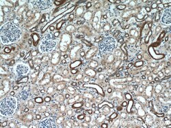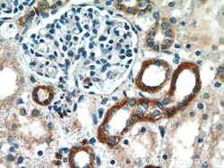 - Immunohistochemistry of paraffin-embedded human kidney using 20612-1-AP (SLC37A4 antibody) at dilution of 1:50 (under 10x lens).