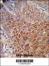 - "Formalin-fixed and paraffin-embedded human skin reacted with IGH Antibody (C-Term), which was peroxidase-conjugated to the secondary antibody, followed by DAB staining. This data demonstrates the use of this antibody for immunohistochemistry; clinical relevance has not been evaluated."