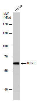 - Whole cell extract (30 £gg) was separated by 7.5% SDS-PAGE, and the membrane was blotted with MFRP antibody (GTX131340) diluted at 1:500.