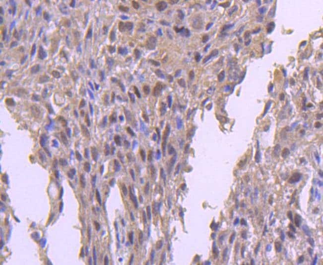 - Immunohistochemistry (Paraffin) analysis of EZH2 in paraffin-embedded human lung carcinoma tissue. The section was pre-treated using heat mediated antigen retrieval with Tris-EDTA buffer (pH 8.0-8.4) for 20 minutes.The tissues were blocked in 5% BSA for 30 minutes at room temperature, washed with ddH2O and PBS, and then probed with EZH2 Recombinant Monoclonal Antibody (Product # MA5-41194) at a dilution of 1:50 for 30 minutes at room temperature. The detection was performed using an HRP conjugated compact polymer system. DAB was used as the chromogen. Tissues were counterstained with hematoxylin and mounted with DPX.