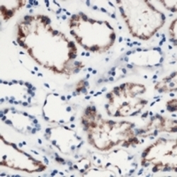 - Immunohistochemical analysis of MOB3C staining in human kidney formalin fixed paraffin embedded tissue section. The section was pre-treated using heat mediated antigen retrieval with sodium citrate buffer (pH 6.0). The section was then incubated with the antibody at room temperature and detected with HRP and DAB as chromogen. The section was then counterstained with hematoxylin and mounted with DPX.