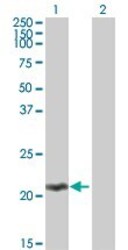 - Western Blot analysis of MOBKL2C expression in transfected 293T cell line (H00148932-T01) by MOBKL2C MaxPab polyclonal antibody.Lane 1: MOBKL2C transfected lysate(23.76 KDa).Lane 2: Non-transfected lysate.