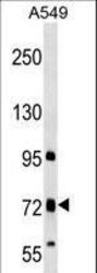 - TMC4 Antibody western blot of A549 cell line lysates (35 ug/lane). The TMC4 antibody detected the TMC4 protein (arrow).