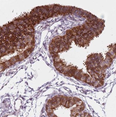 - Immunohistochemistry-Paraffin: TMC4 Antibody [NBP2-13437] - Staining of human fallopian tube shows strong cytoplasmic positivity in glandular cells.